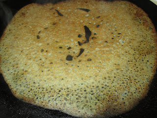 - Heat the dosa tawa and once its hot start pouring a laddle of batter from outside corners of the tawa to inside and fill in the gaps if any